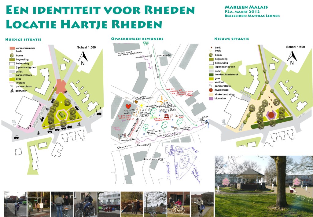 Als locatie is gekozen voor het dorp Rheden aan de Veluwezoom ten oosten van Arnhem. Dé centrumlocatie van het dorp is omgevormd tot een ontmoetings- en verblijfsplek en is onderdeel geworden van een in ere herstelde fietsroute waarmee een directe route tussen het bezoekerscentrum Veluwezoom en het pontje over de IJssel naar campings en waterrecreatie wordt gerealiseerd. De behoefte aan deze verblijfsplek, maar vooral ook aan deze route, kwam naar voren in verhalen van bewoners van het dorp. Enkele interviews zijn vastgelegd en vormen samen met beeldmateriaal een film.